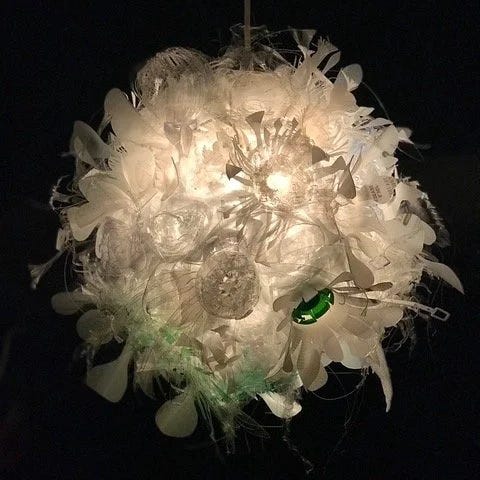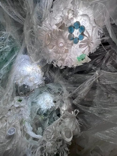 The image above is by community engaged artist Rebecca Schwarz. “I am inspired by patterns in nature, and the ways we are creating, even when we think we are not,” she writes. “What humanity ‘consumes’ is creative, even if we don’t like the results. We are consumers of plastics. Bits are turning up in bloodstreams, lungs, placentas. What can appear beautiful and intriguing can be sickening and dangerous. Time to recreate.” Below, you can read more about Rebecca and her work, including information about the Arts in Health program she runs, Art from the Heart, based in Vermont.